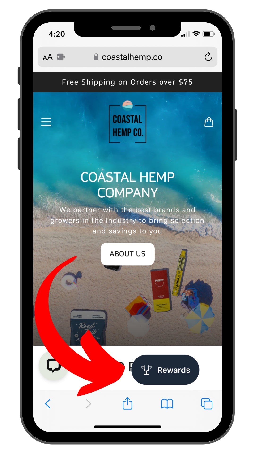 - Click on the REWARDS widget at the bottom of the screen.